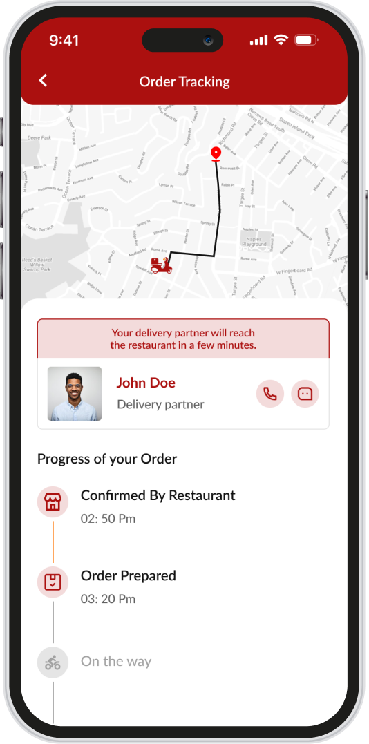 Real-Time Tracking: Track your order live from kitchen to doorstep and stay updated every step of the way.
